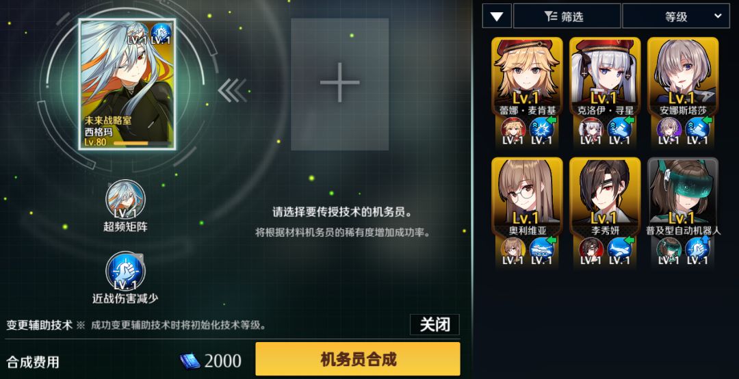 · 作为材料的机务员稀有度越高,成功概率就越高,升级失败则维持升级前的技术等级。
