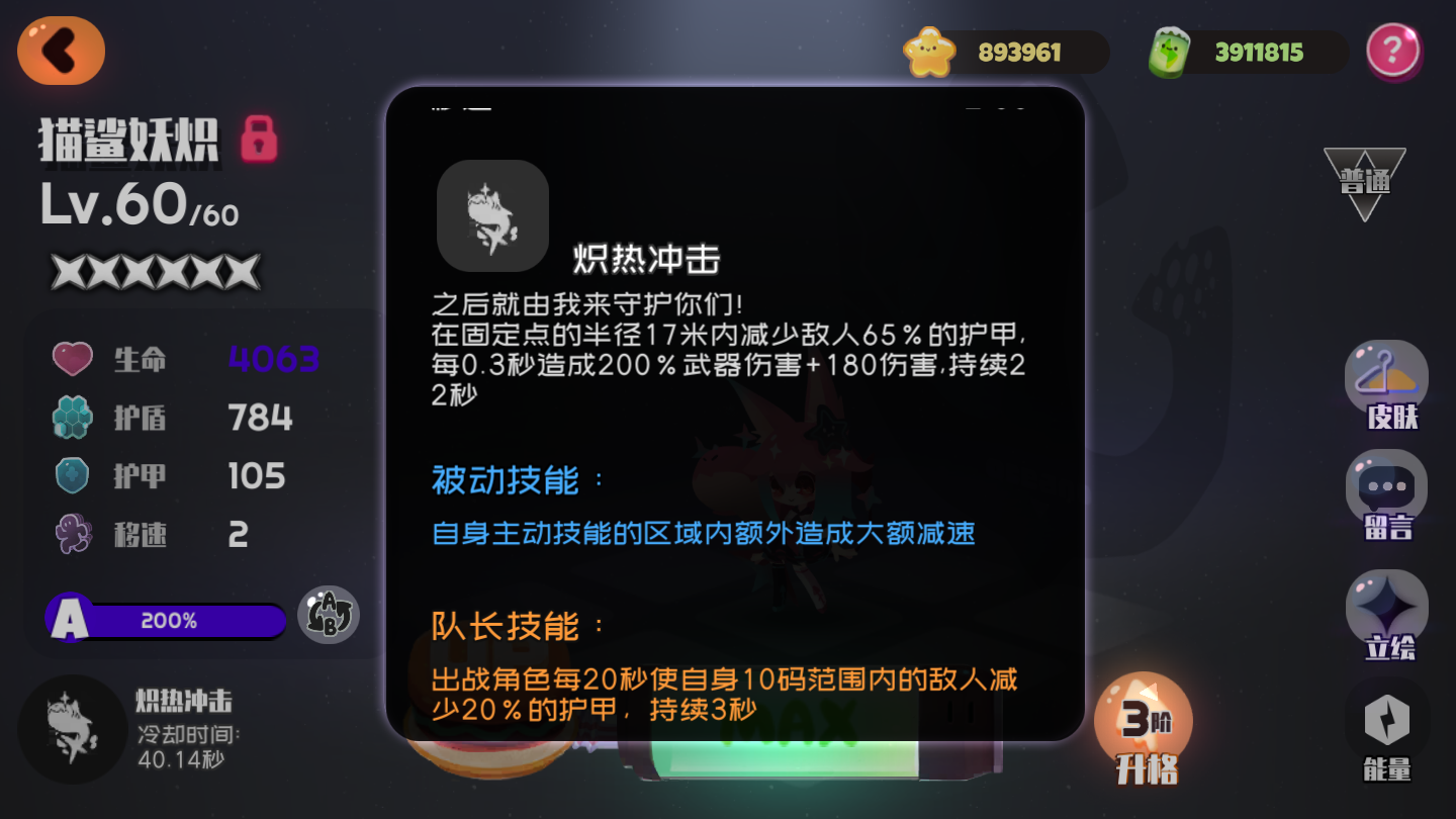 PS:我试过不带技能强度也能过,不过耗时很久还要保证猫鲨给降防,打的磨磨唧唧的就没录。