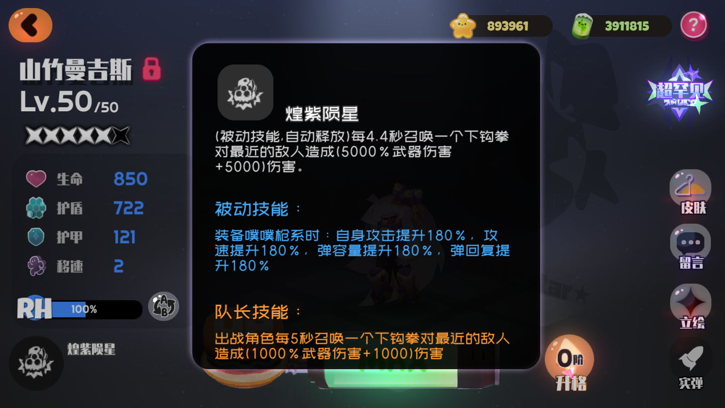 【应该都是人物带技能强度,武器双爆,队长白绒绒或者XH5带猫鲨破防】