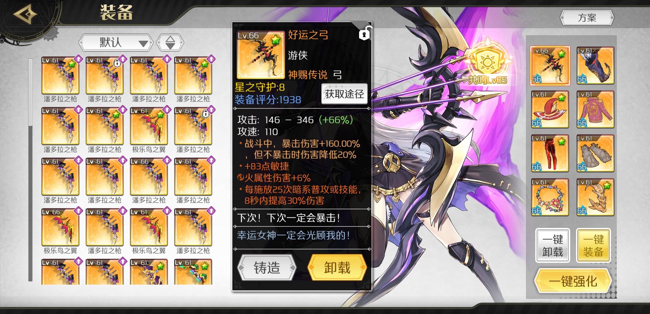 总结:好运弓加的是暴击伤害,不是直接加伤害属实弟弟,潘弓强还是首选,