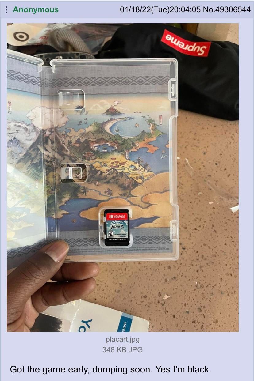 这位4chan匿名用户发布的图片可以看到,他拿到的是美版Switch的《宝可梦:阿尔宙斯》实体版卡带,而且自己在帖子中表示将立刻开始Dump游戏ROM,如果这位玩家的速度够快,那么今天下午左右,《宝可梦:阿尔宙斯》的非法下载就会传遍整个互联网。