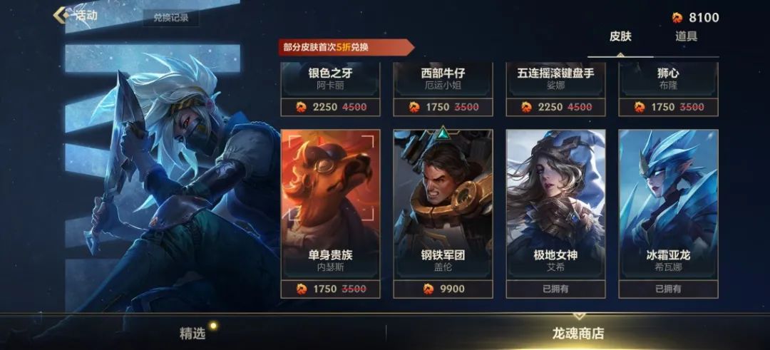 作为“龙魂商店”上线的专属奖励,我们上架了“银色之牙 阿卡丽”皮肤供大家兑换。