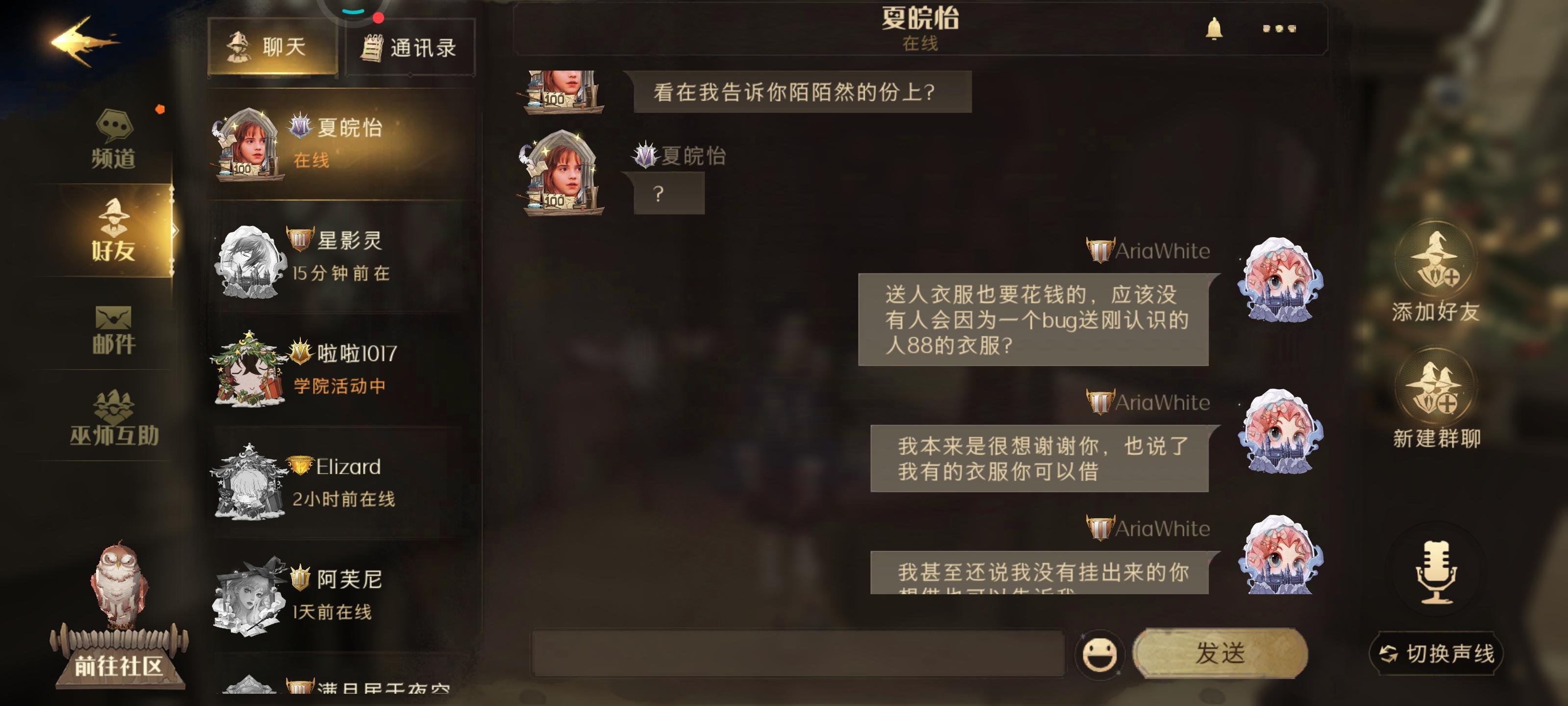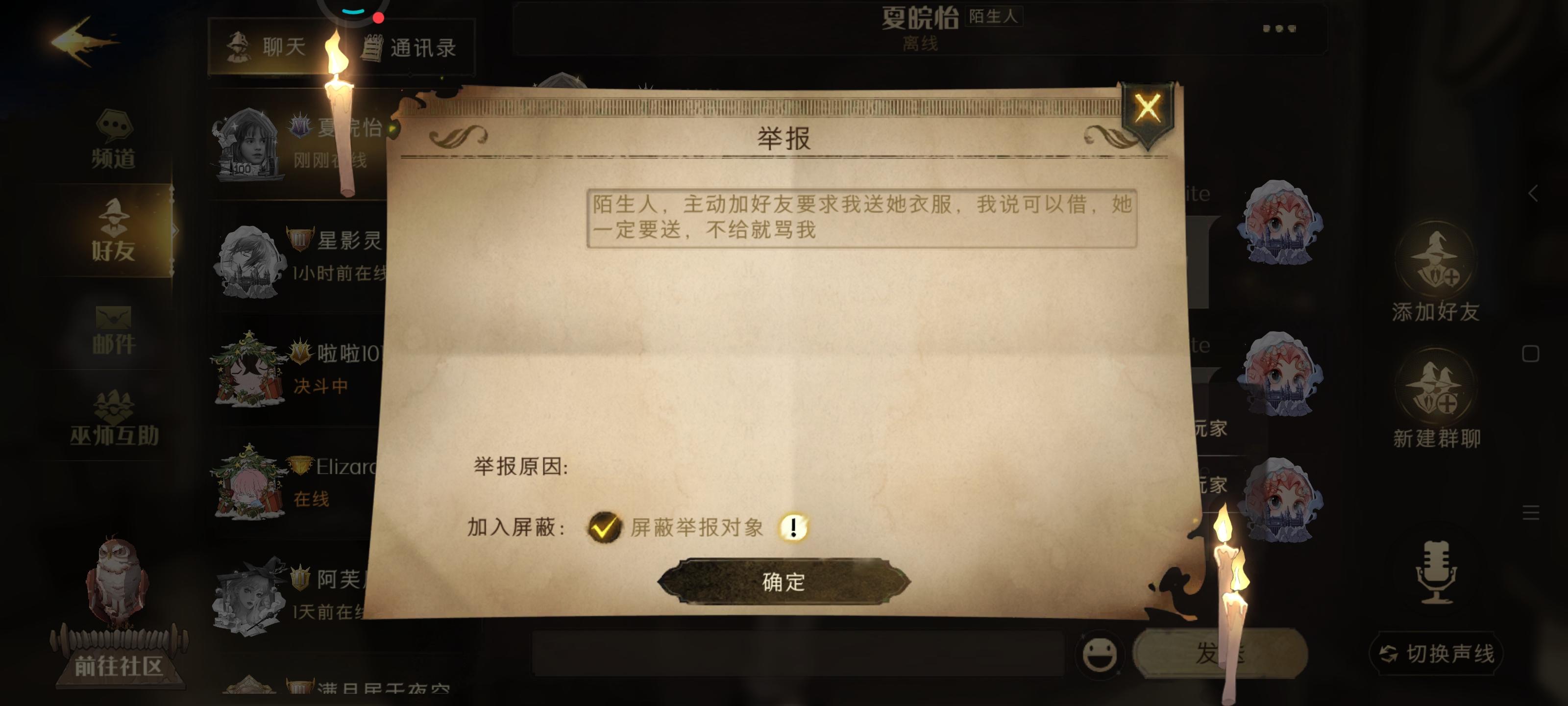 这个时候这个人就从世界加了我,然后告诉我怎么样躲开bug,然后就开始要我给她送衣服。