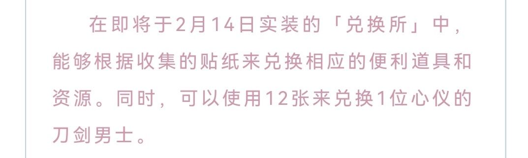 21.“强娶”——指新年活动中收集兑换贴纸,在兑换所开启时使用12枚贴纸,“强行”在兑换所中兑换一位心仪的刀剑。