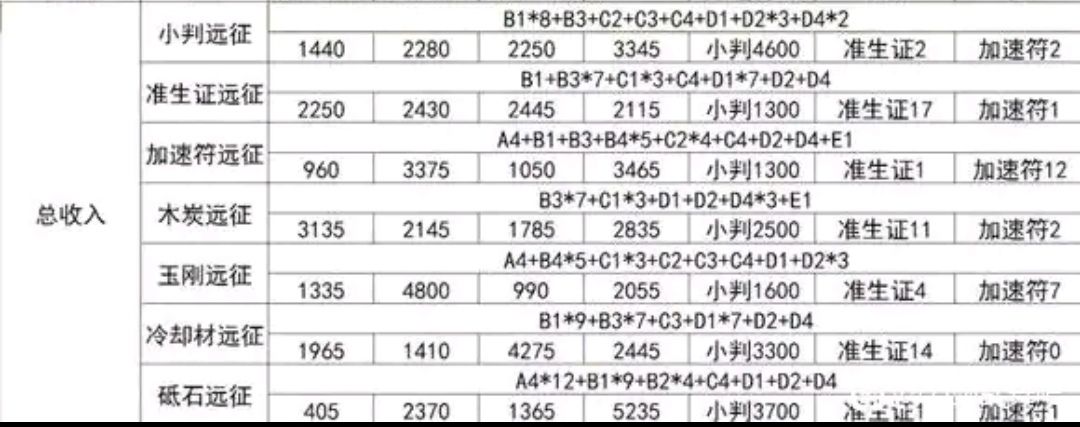 远征收益表