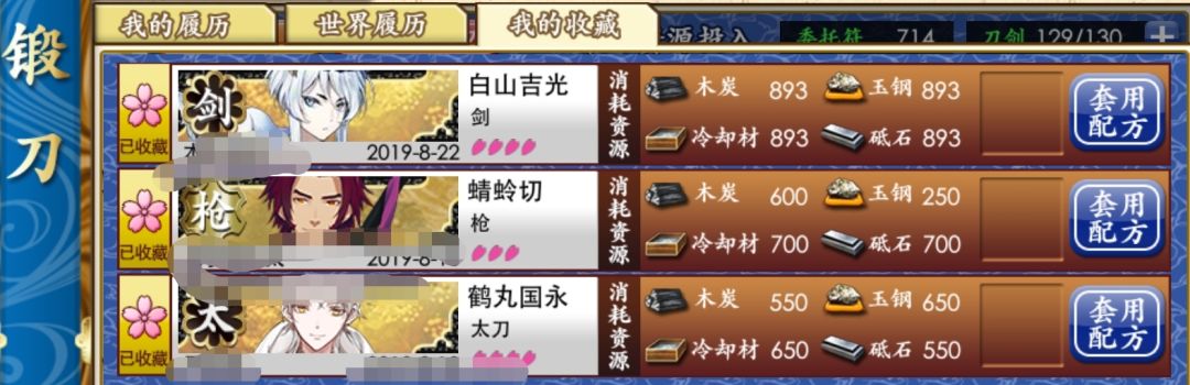 10.“130”——是指锻刀的时间为1小时30分。一溜130证明这个审神者肯定不欧。