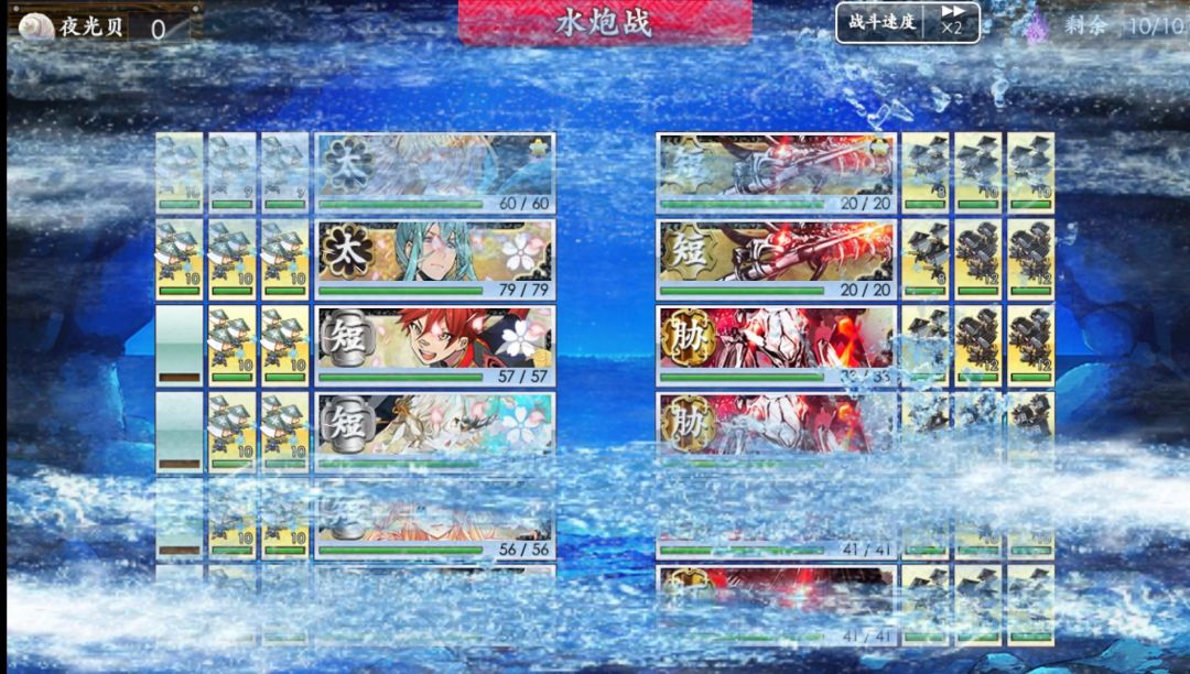 3.“联队战”——允许审神者四队联合、对敌军实施车轮战的活动。战斗形式为连续进攻十轮(按e4计算),每轮战斗结束后可以选择交替2/3/4队出战,但每支队伍仅允许出战一次,可以采用四队流击退敌军,最后一轮概率掉落稀有刀。