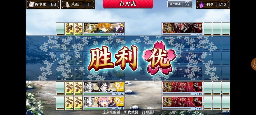 4.“单骑刷花1-1”——就是指一把刀出阵,前往1-1(维新的记忆——函馆),反复出阵,将刀剑的状态刷至粉色飘花。