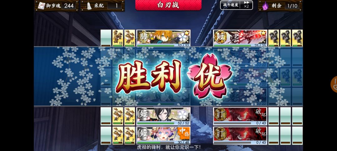 7.“誉”——每一场战斗中,出阵刀剑中的mvp,获得双倍经验。