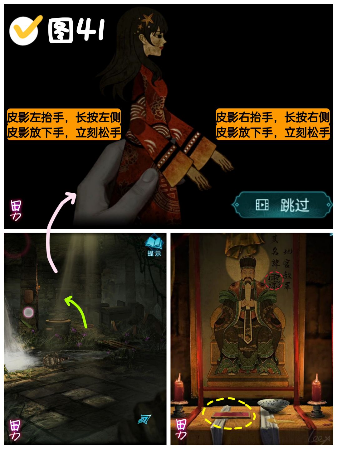 操作方法:皮影胳膊抬到哪一侧,就点击长按皮影哪一侧,皮影放下胳膊立刻松手。(附动图)