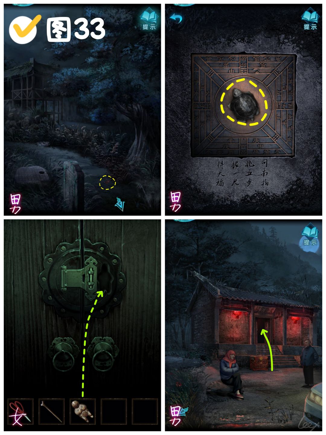 【蓝·申墨卿】右转来到村口,进入祠堂,需破解风水布局王娇彤才可进入。(图33)