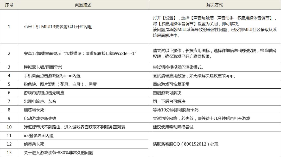 【公告】各机型问题的解决方式与优化进度说明