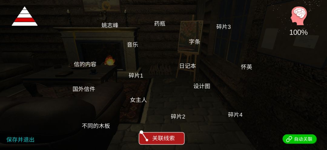 2.碎片 碎片1在二楼床和柜子的缝里,点屏幕缩小蹲下就行了。碎片二在一楼的桌子底下。碎片三四分别在镜子旁边的木架子上和矿泉水旁边的木架子上,一定要点手电筒嗷,不点只能看到黑漆漆的一片的。