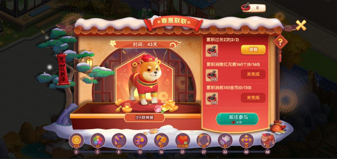 过程累积答对次数,还可按照进度条解锁对应奖励,而最终奖励是小H新春时装,耶耶耶!