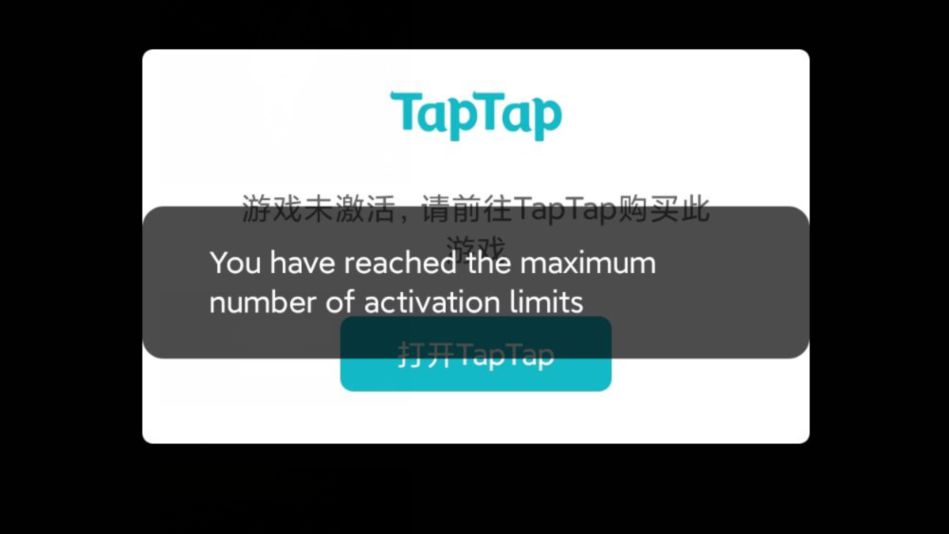 部分游戏方也会设有激活/绑定次数的上限,与TapTap的机制互不影响。若遇到以下图示的情况,请按照相关提示,联系对应游戏方客服处理即可。(下图示例为Cytus II)