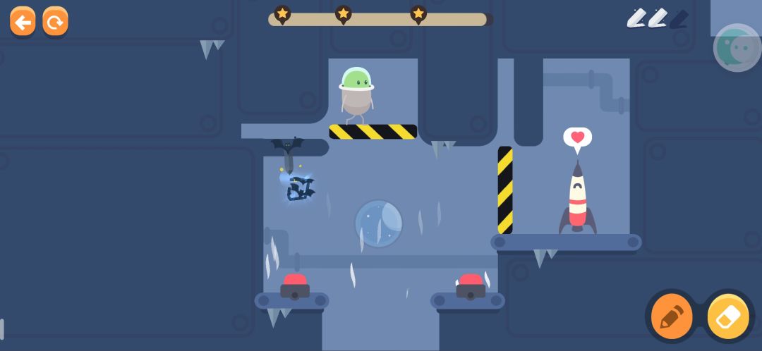 按下两个按钮,豆子上去后擦掉左边的线