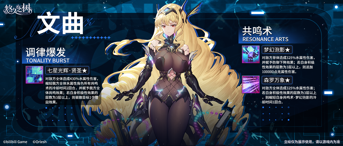 铛铛铛!首先为大家解读的角色是——水属性的文曲大姐姐!完全养成状态下的文曲,将会在与火属性强敌的战斗中发挥强力制衡作用。