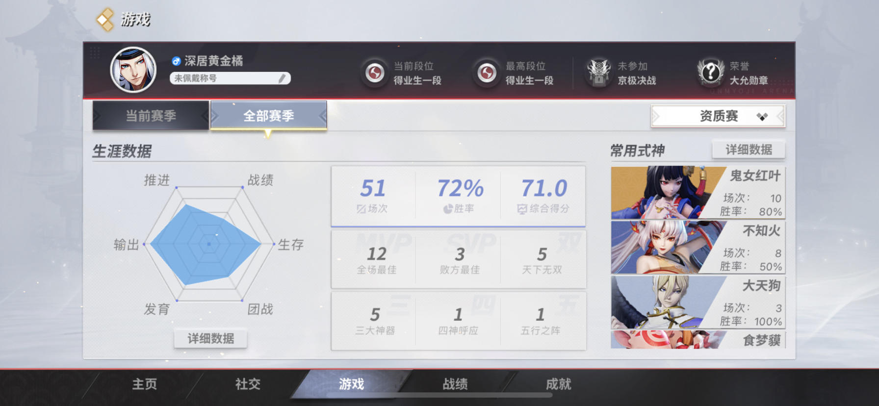 原来是我抢了他的不知火啊,那我可真是对不起他。他那局内一副小人嘴角,属实让人恶心。