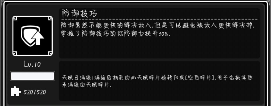 增加生命上限。属性天赋中唯一用处大的天赋。防止暴毙。