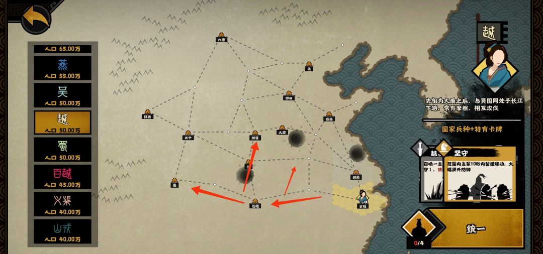 对于越国而言,楚国和百越就是自己的经验包,因此不要客气快速扩充地盘,当有了充足的资本以后再和吴国战斗。