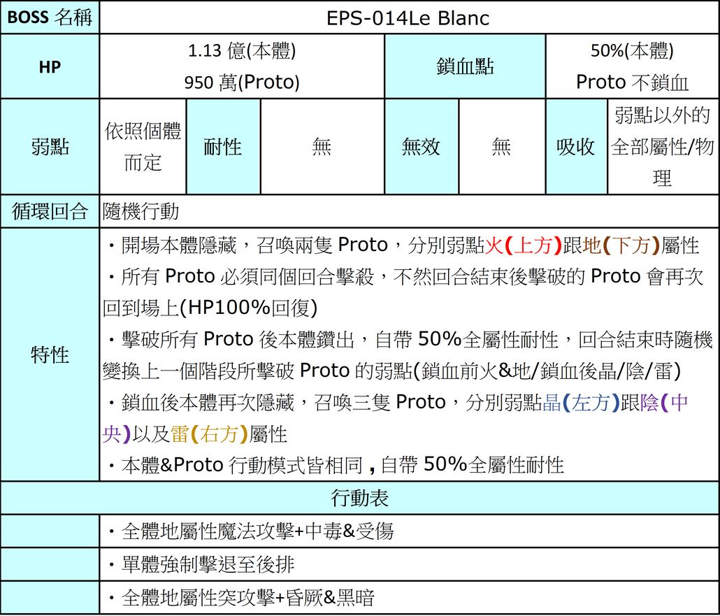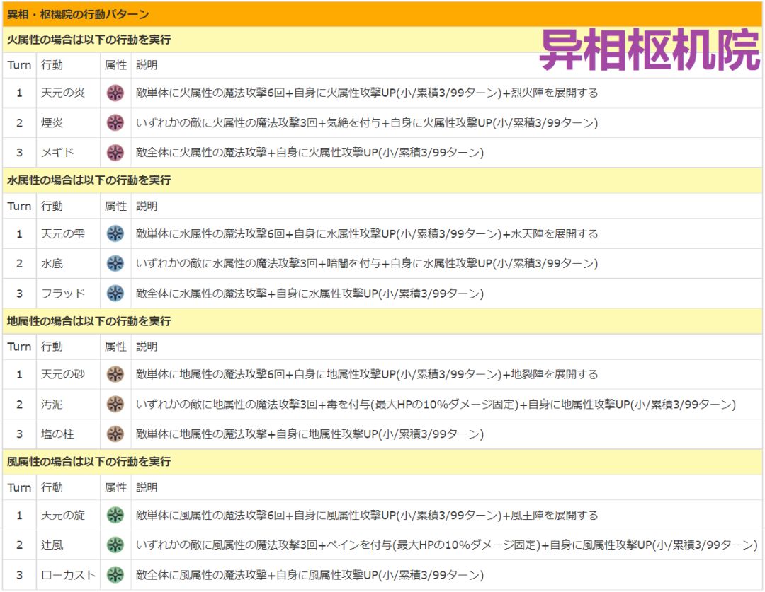 ●异相枢机院:HP144w,①弱水 吸收火,②弱地 吸收水,③弱风 吸收地,④弱火 吸收风