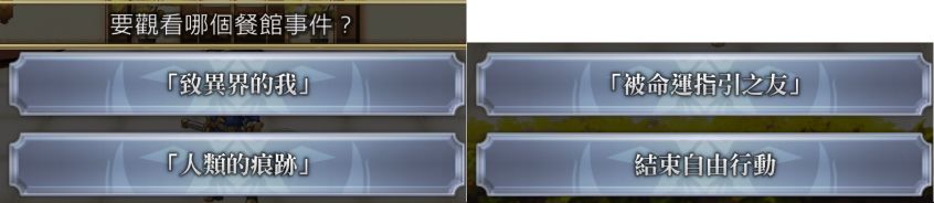 剧情回顾:在次元夹缝酒馆可重看,次元夹缝可回溯到IDA学院L栋(袭击时)、常夜的灵长机关、莎蒂拉体育场-工作人员通道、宵暗的灵长机关(第7话后)