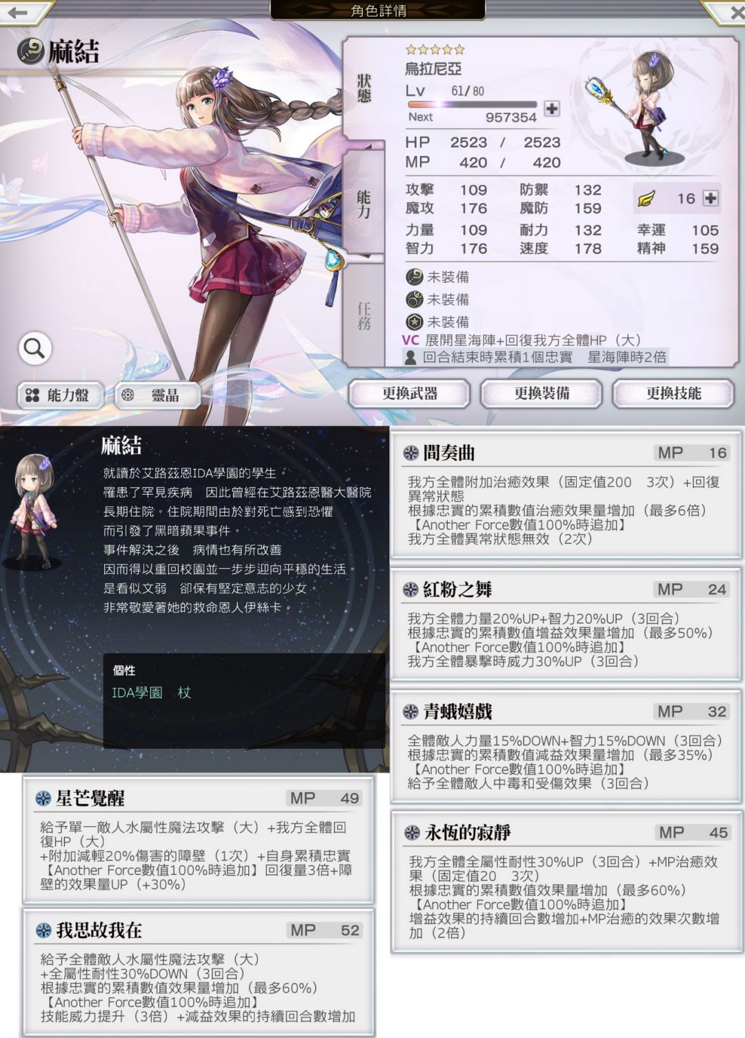 Another Sence:角色在阵觉醒时发动的被动效果,在前排时生效,死亡/石化/后排会失效