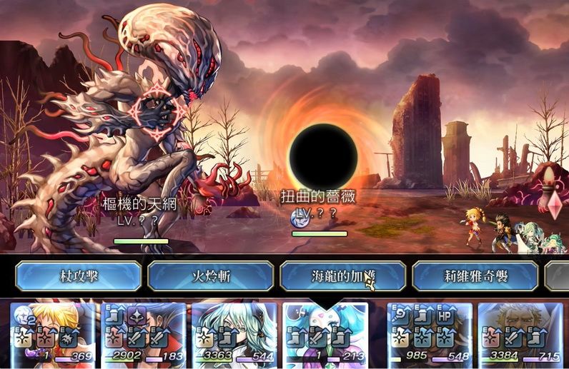 和②连续战斗。耐阴,HP307w,锁血70%,30%,锁血时有对话
