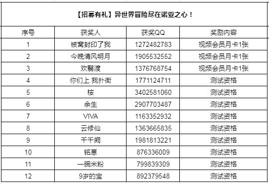 (已开奖)【招募有礼】异世界冒险尽在诺亚之心!