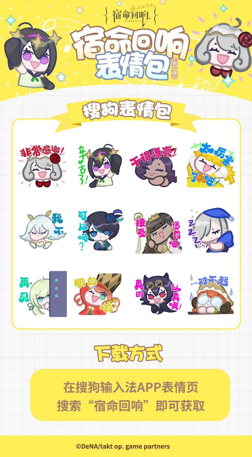 现在,进入搜狗输入法APP表情页-搜索“宿命回响”即可拥有12只小可爱,你被哪只奏者萌到了?快去告诉其他指挥家这个好消息吧!