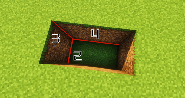 首先我们需要找到一个经常有动物出没的地方,然后地面上挖出一个4*2*3的坑。