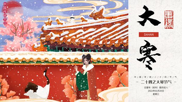 大寒带来了冬天的最后一丝寒意,此时更应注意保暖养生,以防“寒”为主,饮食不宜过咸,切忌寒冷食品,进行滑雪、溜冰等运动,需充分热身,切记注意安全哦。