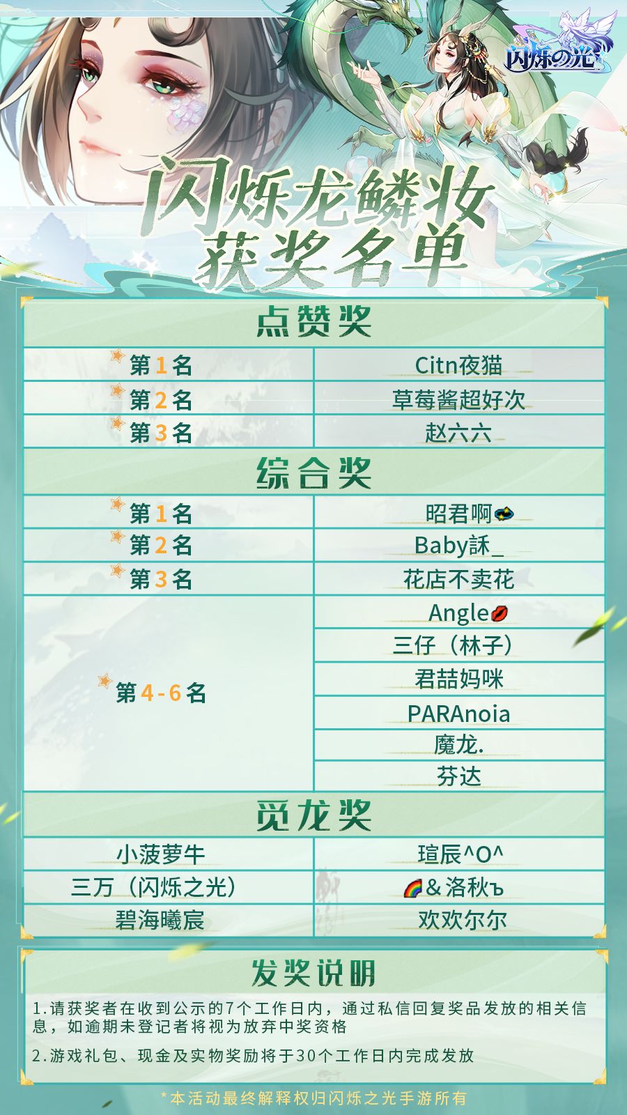 官方公告 | 「闪烁龙鳞妆」抖音挑战赛活动圆满结束,获奖名单公布!