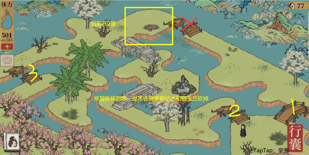 1.遇到断桥的时候,要注意有的是不能修复的,不想浪费资源的话记得按图示的标记走