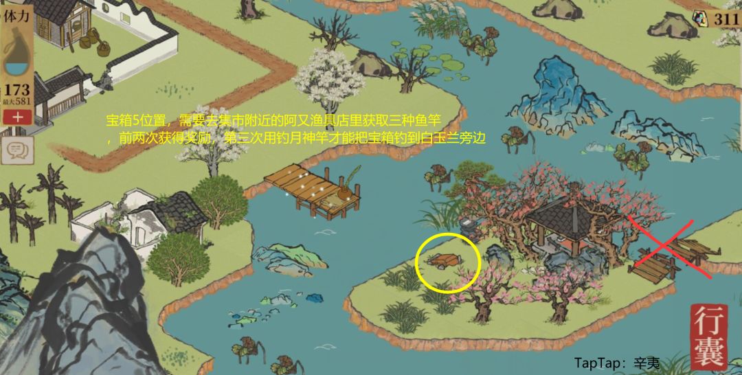 5.获取宝箱5时,需要去【阿又渔具店】买钓鱼竿,三种都要买完,前两次是普通鱼竿钓鱼,可以获取奖励,第三次才能钓到宝箱,走旁边的断桥到不了