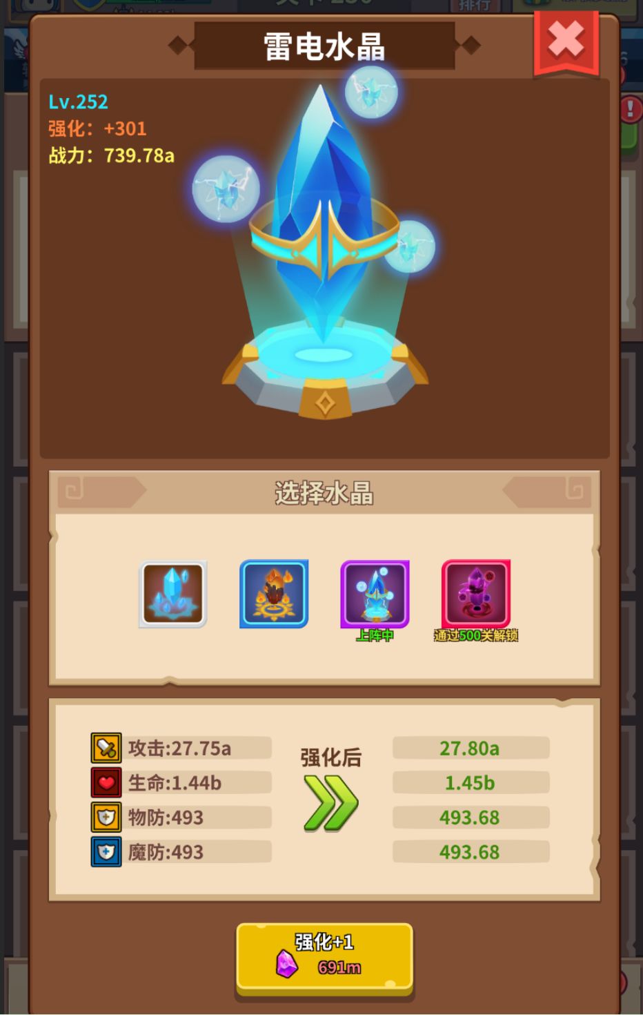 水晶可以强化、升级,让属性快速提升,消耗的资源全部是系统免费获取的,这个也是很容易获得的。