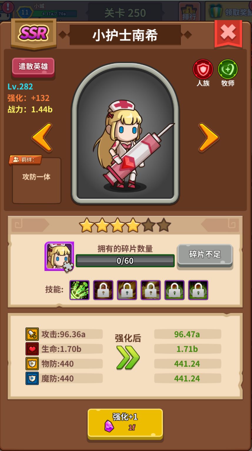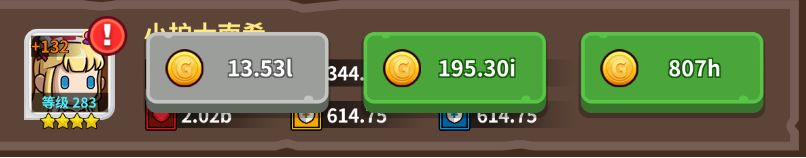 点击按钮后,会显示3个选项,最右边的选项是每次升1级,其他分别是升10级和升100级,当您的金币不足时,对应的按钮则会变为灰色哦!