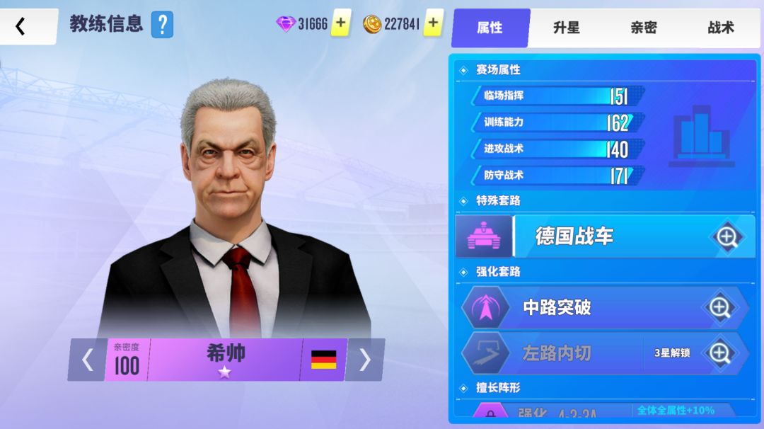 加成:前场中路带球且防守球员靠近时触发战术,恢复自身战术值30%的体力。