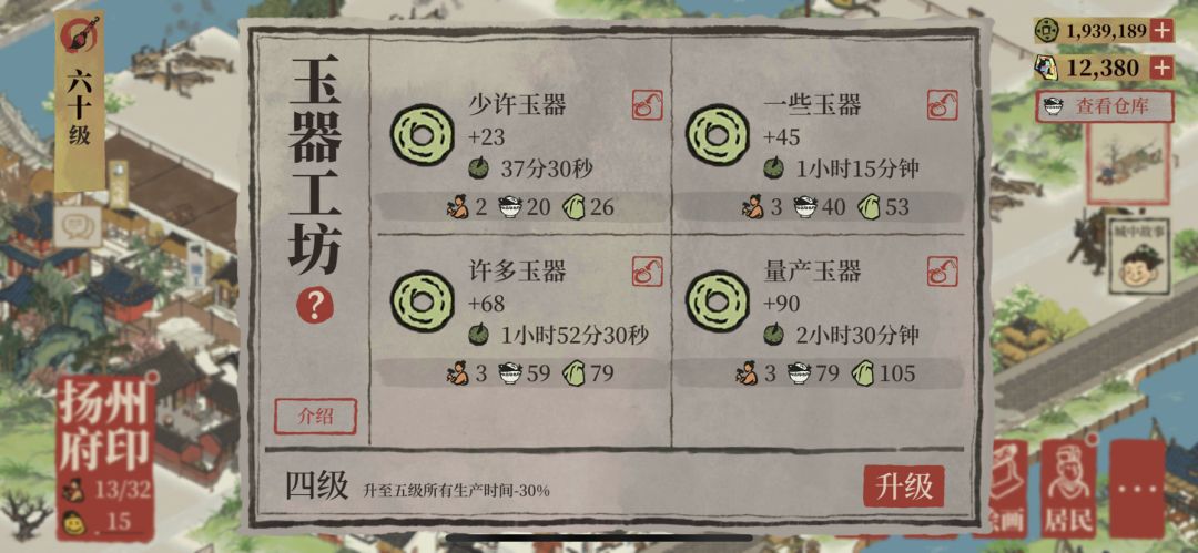 1-玉石:用于玉器工坊;2-粟米:用于香粉厂;3-油墨:用于印刷厂;4-压舱石:用于升级香粉铺和印刷厂。