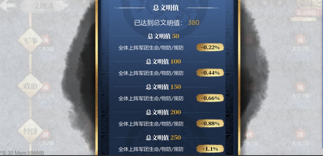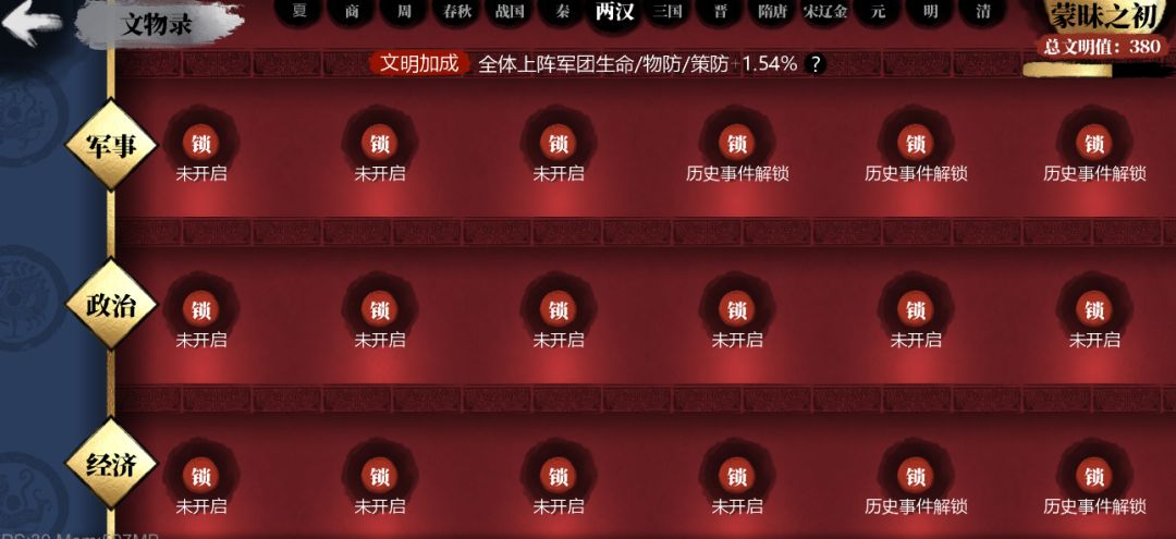 2:每个文物可以获得文明度,通过文明度的等级提升可以获得全军团的属性加成。