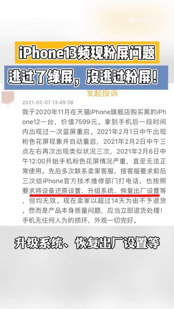 iPhone13“粉屏”问题遭大量用户投诉:几乎全系都有