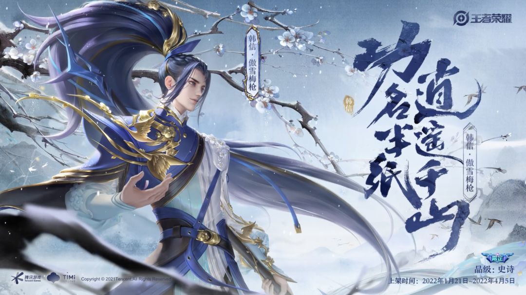 《王者荣耀》:1月19号上架【韩信-傲雪梅枪】皮肤及配套活动