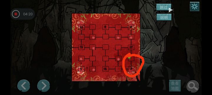 从伤位置走到休门,往杜走的话,你到不了生门,看地图我画红圈⭕绿色珠子是自己本人,走到开,然后再走惊接着往上走到死,每过一个洞看一下地图,看自己到哪个位置,不看地图很容易错,要会看地图,就知道走的路线,到了死接着走到到景往下面走到杜门,从杜门再走伤,就到生门