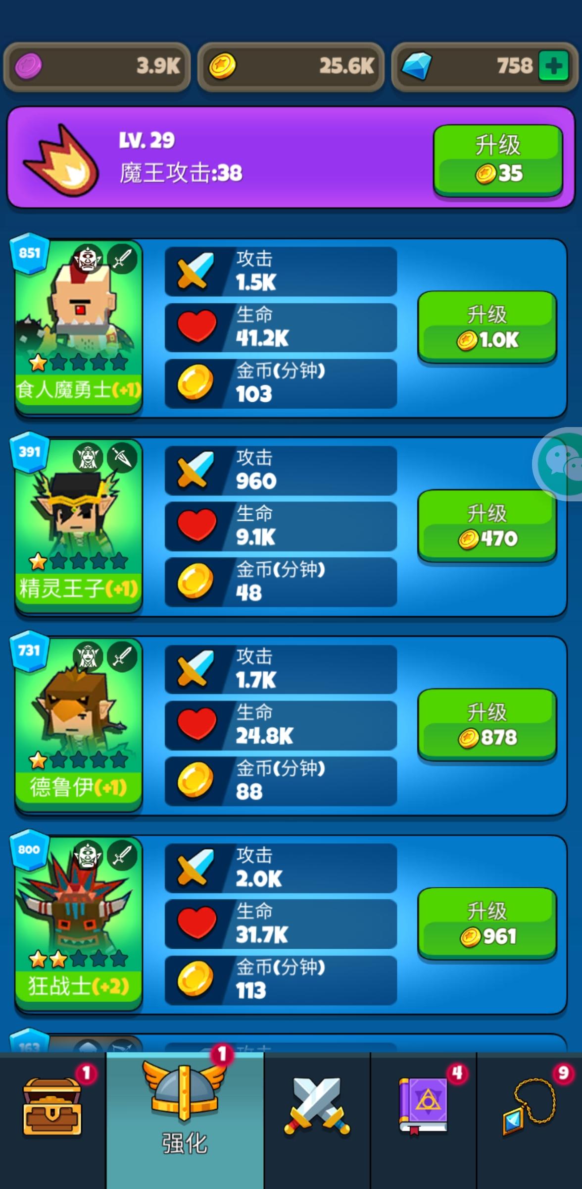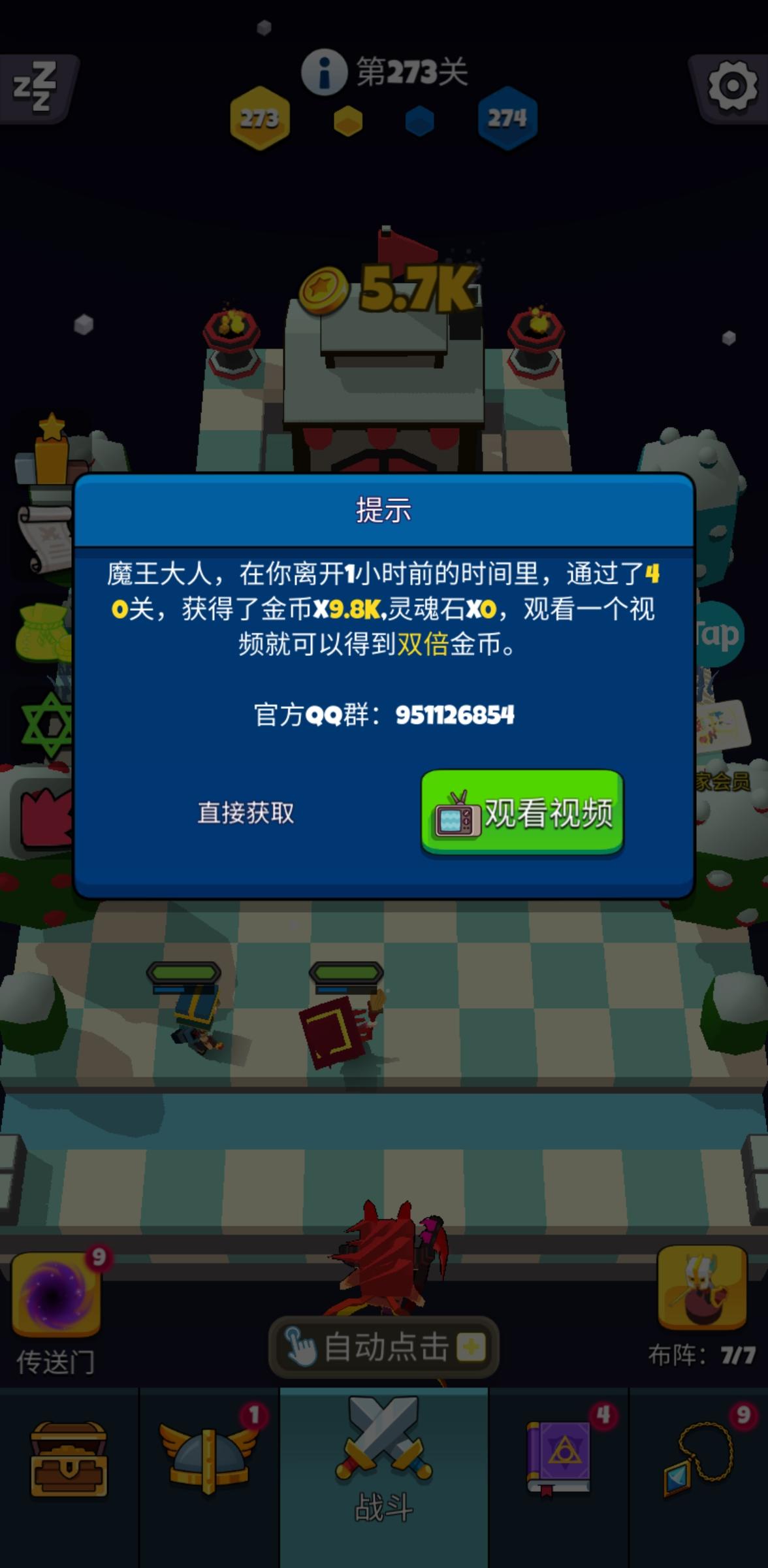 闲暇摸鱼好游戏,有空就挂挂机,没空就收收菜。得闲上去开个宝箱,选择主力升升升,离线还能推图