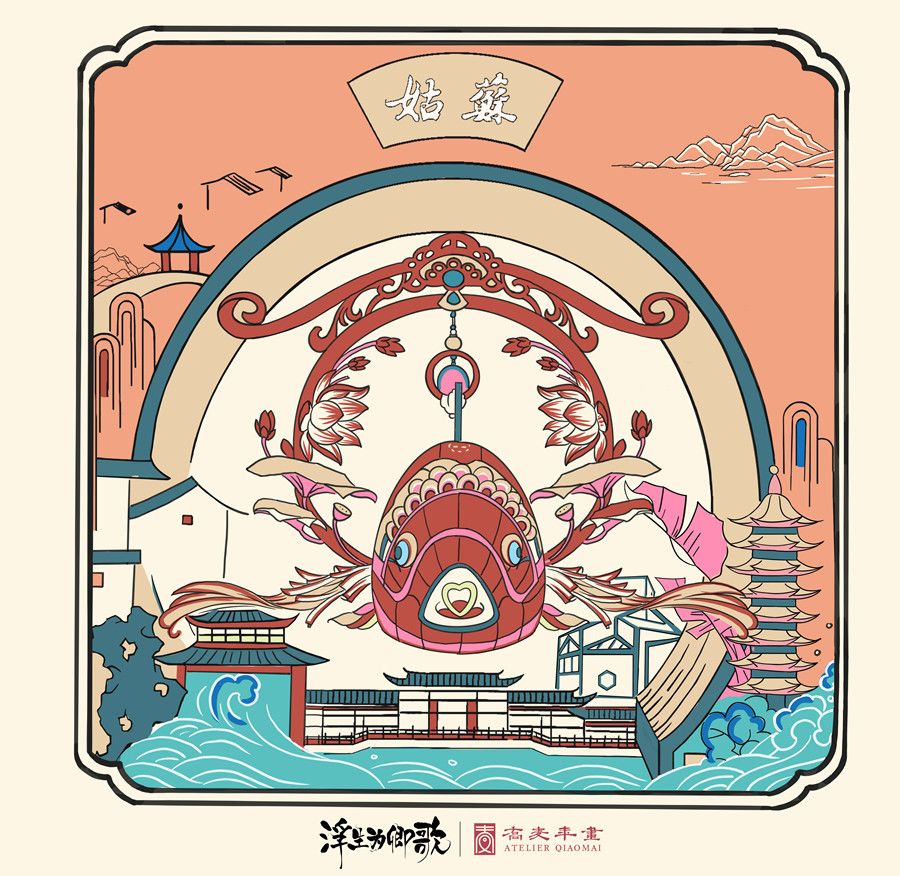 《浮生为卿歌》此次与乔麦年画合作,不仅是为了传承国风经典、弘扬传统魅力,同样也是为了展现我们对于华夏流传千年文化的那份真心热爱。乔兰蓉老师以《浮生为卿歌》手游中的新春坐骑为灵感,匠心创作了独一无二的新春木版年画,方形的构图中,以锦鲤为主、龙门为辅,寓意年年有余、富贵大吉,在此基础上交织古塔、山川湖海等唯美的国风元素,为诸位古风迷献上独属于浮世山河的的桃花坞木版年画。