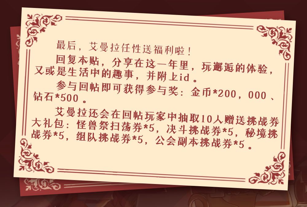 参与方式:回复本贴,分享在这一年里玩邂逅的体验,又或是生活中的趣事,并附上id。