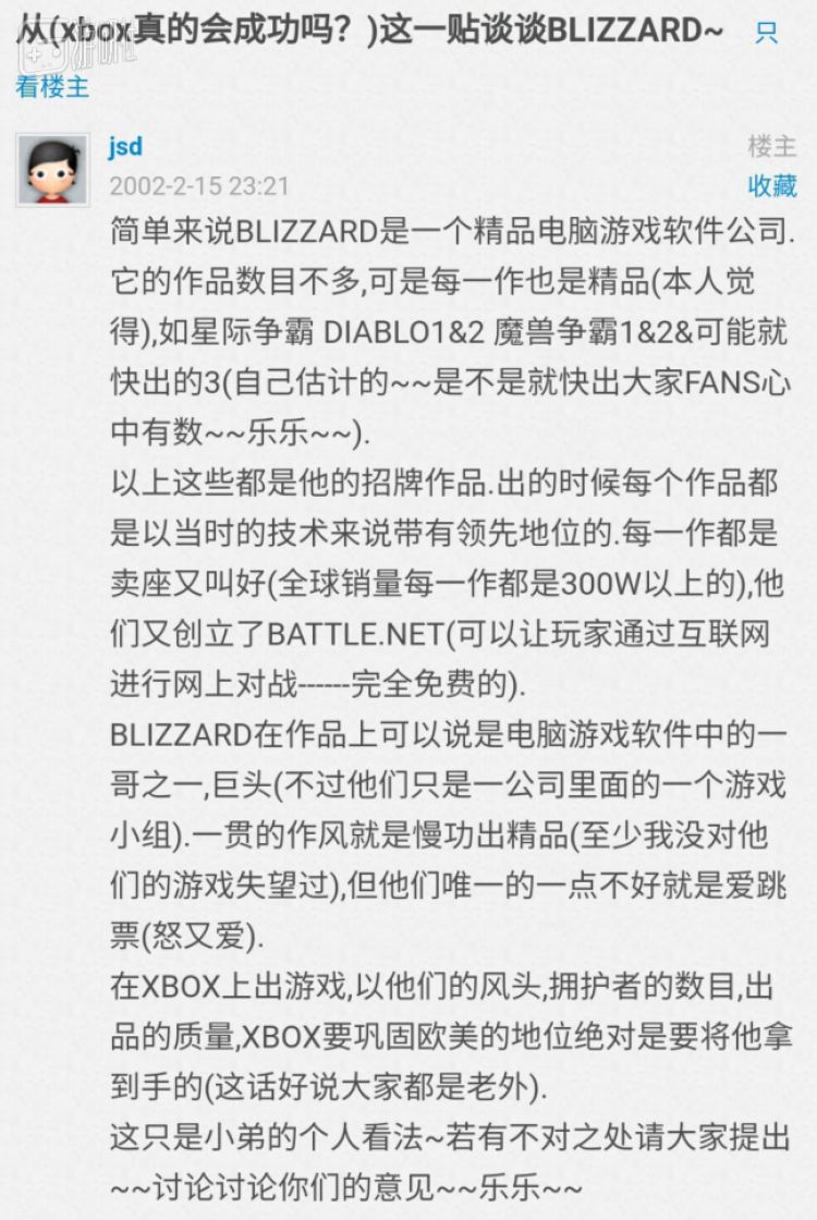 这样的话题如果是出现在当今的互联网上,无疑会被视作“钓鱼”“引战”。但当时的回帖者们却都在一本正经地讨论着暴雪游戏的发展以及它们与Xbox相融的可能性,畅想着这一切将给游戏界带来怎样的变化。
