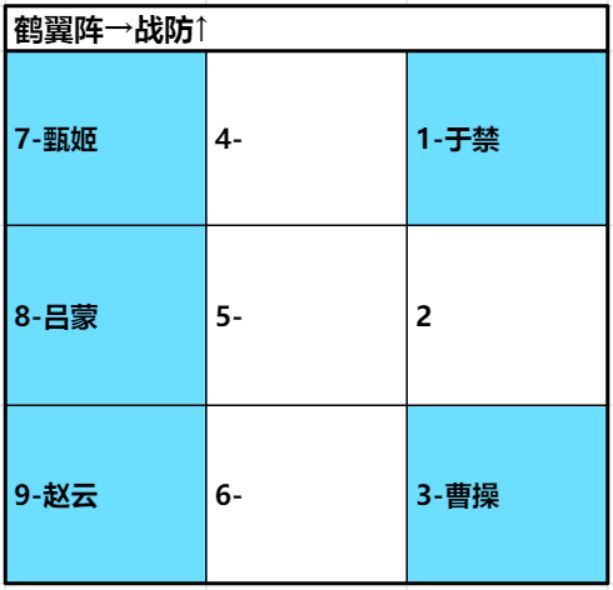 思路:在常规的战攻输出阵容中,附带上吕蒙作为阵容的辅助输出,吕蒙的位置可以调整,具体根据届时各位想要克制的对面武将的站位来定。