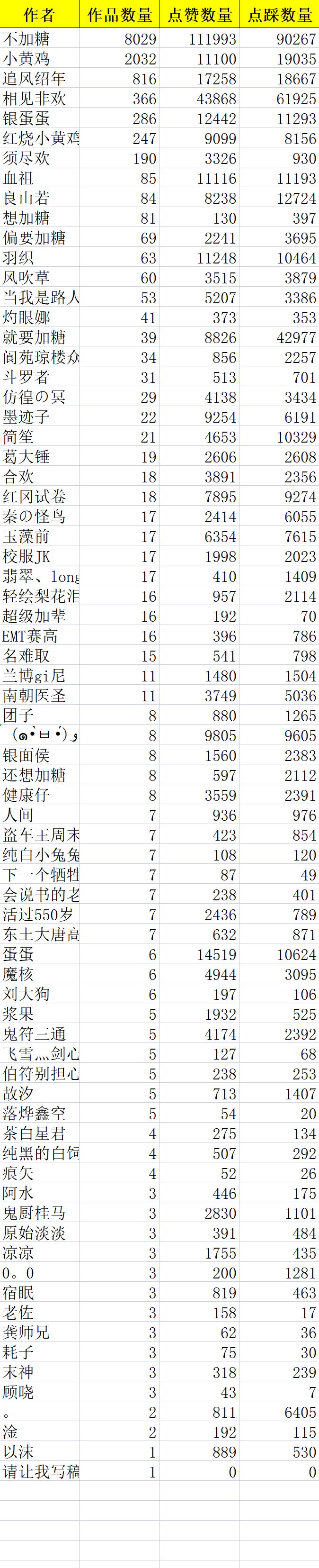 【公开处刑作者排名】看看你喜欢的讨厌的作者都在里面吗?