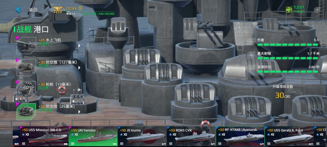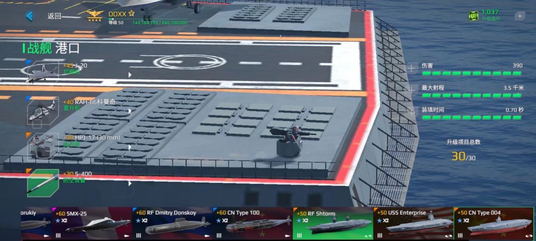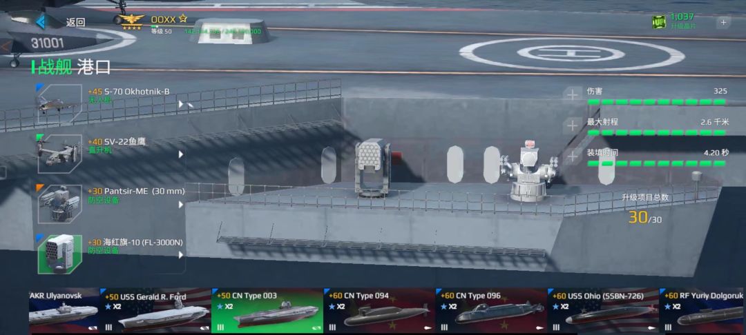 这艘船最大的特点是防空TM超多,但是其他方面不是特别好,所以说不推荐使用,虽然他防空多,但是打飞机的效率还是没有航母好,拦截像东风这种超高音速导弹有些力不从心